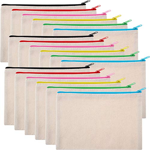 18 Pieces Canvas Makeup Bag Multipurpose Cosmetic Bag Travel Toiletry Pouch Pen Coin Bag Blank DIY Bag with Zipper for Women Girls (L)