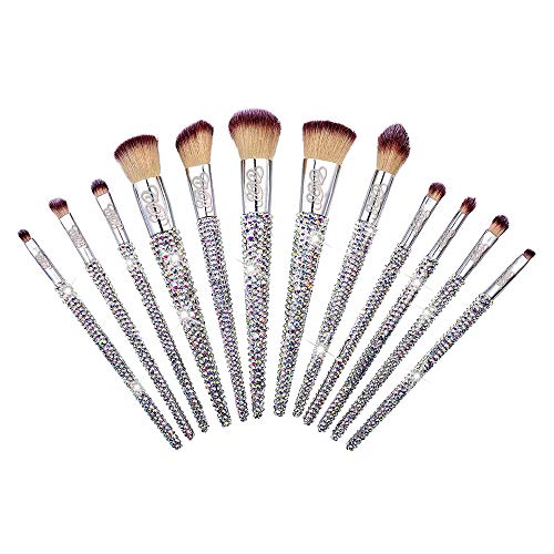 CRYSTALS BEAUTY Shiny Sparkle Luxury Crystal Bling Out Rhinestone Makeup Brush Set (12 pc, Silver)