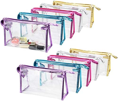 Hedume 10 Pcs Transparent Waterproof Cosmetic Bag, PVC Clear Makeup Organizing Bags With Zipper Perfect for Bathroom, Travel