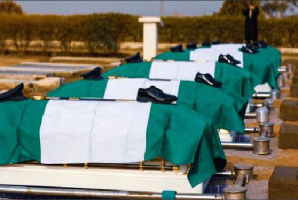 “In addition to honouring the sacrifice and memory of our fallen comrades, offers us all an opportunity for sober reflections as we pray for the eternal repose of the gentle souls of our departed heroes. Their death is a huge loss to the Nigerian Air Force Family and indeed the entire Nation. They will be greatly missed but fondly remembered for their invaluable services to the Nation and Humanity. Today, as our late colleagues go to their final resting place, may the Lord be with them forever and may they rest assured that the Nigerian Air Force and indeed the Nation will remain ever grateful to them for their service and sacrifice.